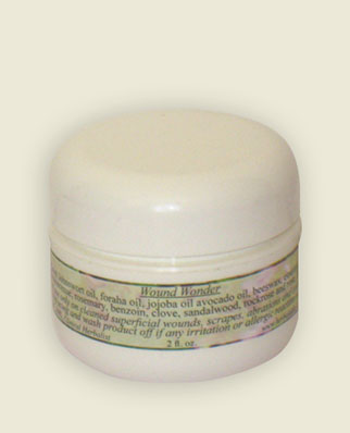 Treat any skin wounds quickly (best within 4 hours of occurrence) to reduce risk of infection. Clean with soap and running water, or normal 0.9% saline solution, and gently remove any debris (with soft washcloth or sterile tweezers). Apply Wound Wonder salve, and cover with a bandage. Avoid having the bandage too moist or too dry. Change dressing twice daily, checking the wound for infection signs before applying fresh ointment and new bandage.